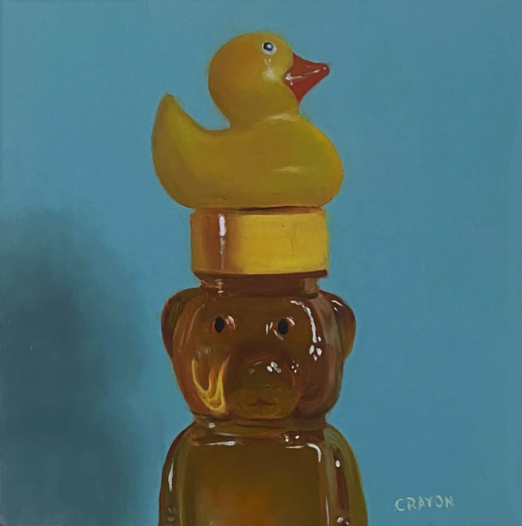 This painting started as a simple still life, but it quickly became something else — a small reminder that not everything that stands out wants to be noticed, and not everything quiet wants to disappear. The bear holds its composure while the duck steals the spotlight, yet somehow, they belong together.